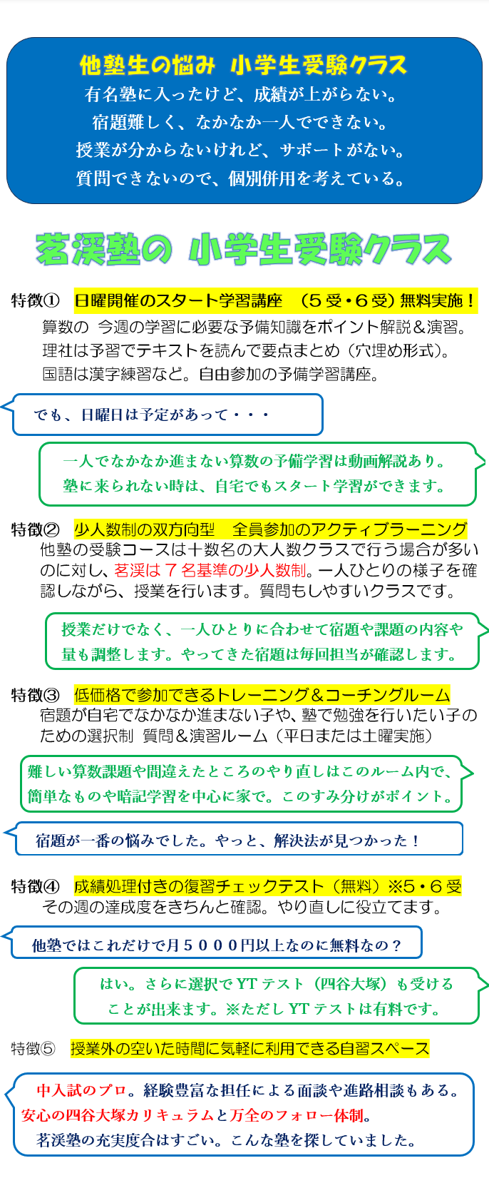 ◆学力に自信をつけ、中学進学前に得意科目を作る