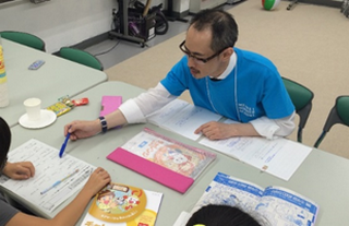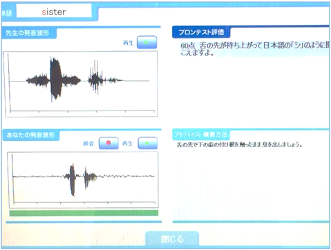めいけいキッズでは月に2回ほど、英語講師またはネイティブによる英語指導を予定していますが、学習時間の余裕のある平常時には講師(指導員)とともにコンピュータを使用しての学習を行います。プログラムに従って英語を学び、最後にネイティブの発音を聞いて発音練習も行います。生徒の発音はコンピュータが分析して、正しい発音へと導きます。自動で録音もされ、自分の発音の確認もできます。